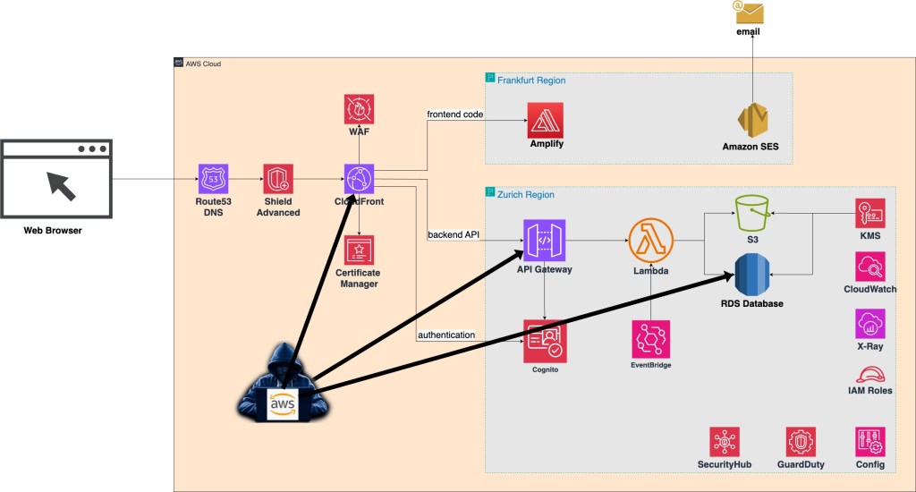Next point of attack could be data in memory. Requests coming to API Gateway are terminating TLS connection that was initiated by CloudFront and data in API Gateway memory stay unencrypted for a short period of time before they are delivered to destinations, in our case to Lambda.